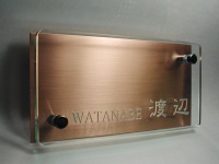 取付ける場所によって趣きをかえてみてはいかがですか。 透明ガラスと銅板の表札・透明ガラスとしんちゅう板の表札にて承ります。 |