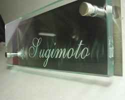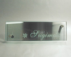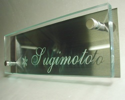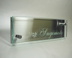 透明ガラスとステンレスの表札250×80 2点飾り止め