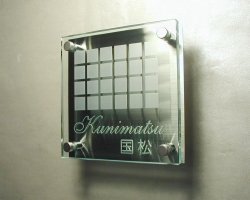 透明ガラスとステンレスの表札150×150 4点飾止め