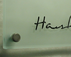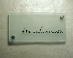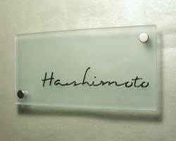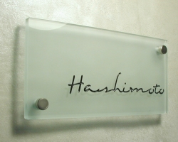 裏面がすりガラスの表札です。やさしい印象の表札に仕上がりました。