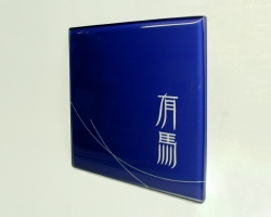 カラーガラスの表札は透明ガラスの裏面に特殊加工で色を付けており、色鮮やかな表札を表現できます。裏から彫刻し色入れしますので、表のガラス面は凹凸がないので見た目もすきりしております。