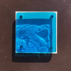 ガラスサイズ:140o×140o×10.0o 表から彫刻、文字には色を入れます。