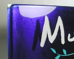 紺色ガラスとステンレスの表札200×100 2点飾り止め