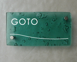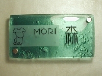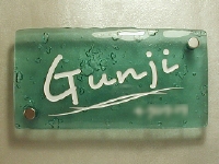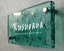 複層のガラスを重ねて焼き上げた厚口のガラスを表札にしました。