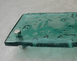複層のガラスが自然に融合して焼きあがりますので1枚ごとに少し歪で特徴のある仕上がりになります。