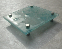 複層のガラスが自然に融合して焼きあがりますので1枚ごとに少し歪で特徴のある仕上がりになります。