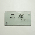 透明ガラスの片面をすりガラス状にすることでガラス表札のイメージを変えました。