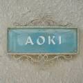 白濁したガラスが壁面の色をやさしく表札に映します。 |
