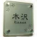 透明ガラスの片面をすりガラス状にすることでガラス表札のイメージを変えました。