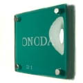 フュージングの技法で焼き上げた厚口のガラスを表札にしました。 2層のガラスが自然に融合して焼きあがりますので1枚ごとに少し歪で特徴のある仕上がりになります。 |