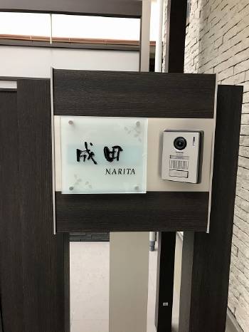 バックライト付きのアルミパネルにすりガラスの表札を設置されました。 |
