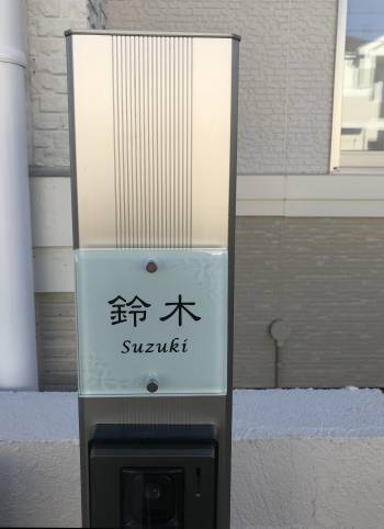 施工例紹介 鈴木邸 カラーガラス(白)表札 |