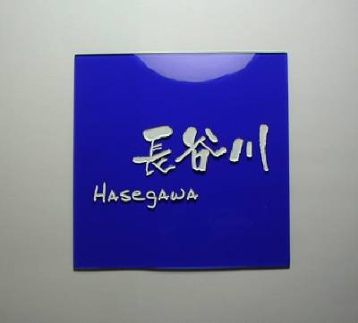 | 輸入色ガラス(紺):130×130×3.0 文字:表から白色 |