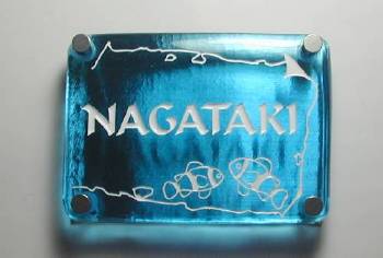 | 輸入色ガラス(ブルー):130×100×10.0 文字、イラスト:表から白色 |