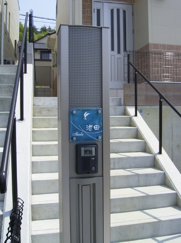 施工例紹介 パナソニック アーキッシュポール門柱に表札を取付けました。