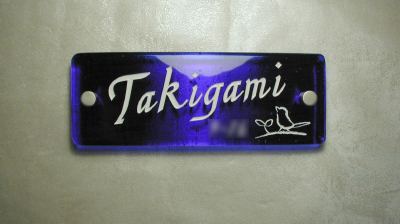 色ガラス:190×90×6.0 ステンレス:190×90×1.0 文字:表から彫刻、白色入れ