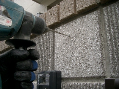 A電動ドリルでアンカー差込み用の穴を開けます。 |
