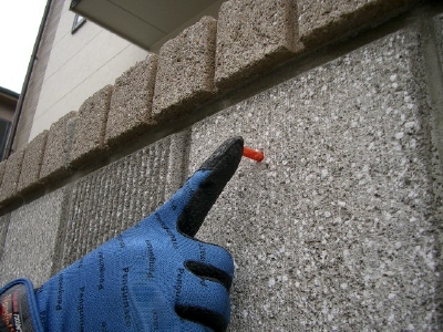 施主さまよりコンクリートブロックへの施工写真と共に取付け施工時の写真も送っていただきました。 |