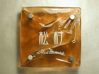 輸入色ガラス:150×150×15.0 4点飾止め 文字:表から白色入れ