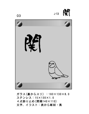携帯で撮った手書きの原案をメールに添付して頂きました。インコのイラストがご希望という事で資料のインコを加工して表札用にデザイン化させて頂きました。文字の大きさ、インコの大きさなど全体のバランスを調整して最終デザインが決まりました。オリジナルデザインで素敵な表札になりました。