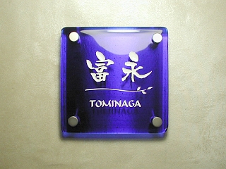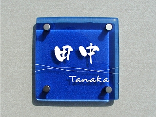 | □ 色ガラス(紺)とステンレスの表札 | |