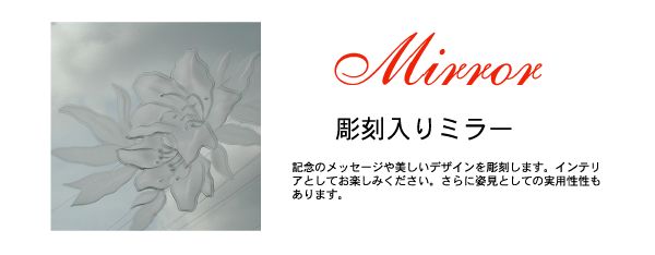 ミラークロック 5o厚のミラーに、ゆりのブーケを多段彫りしました。あいたスペースにメッセージをお入れします。 ・ミラーサイズ 300o×300o 販売価格(彫刻・税込み) |