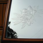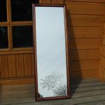 インテリアミラー 吊り下げタイプの縦長ミラーのアクセントにデザインを彫刻しました。姿見を邪魔することなくミラーを引き立てます。ご希望のデザインを彫刻します。 →製作紹介 ・5o厚ミラー