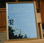 ウエルカムボード ミラーの表からデザインと文字を平彫りしてあります。結婚式場、披露宴会場でご利用ください。ご希望のかたは彩色も承ります。 5ミリ厚ミラーにエッチング M:\12,800 ご注文 L:\15,800 ご注文 |